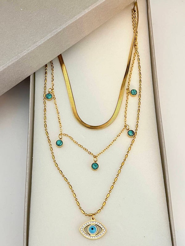 Kararmaz Çelik üçlü kolye